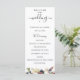 Fleurs et feuillage aquarelle rose et prune, programme de mariage. Le programme présente une calligraphie mignonne "mariage" avec plusieurs lignes pour les listes de texte personnalisées pour l'ordre des événements de la cérémonie, le cortège de mariage et le mot de remerciement.