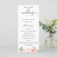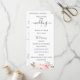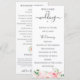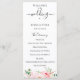 Élégantes fleurs aquarelles rose tendre et feuillage vert délicat, programme de mariage. Le programme comprend une calligraphie mignonne "mariage" avec plusieurs lignes pour les listes de texte personnalisées pour l'ordre des événements de la cérémonie, le cortège de mariage et le mot de remerciement