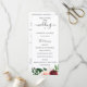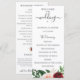 Élégantes fleurs et feuillages aquarelle rouge bourgogne et rose, programme de mariage. Le programme présente un accent de calligraphie mignonne "mariage" avec plusieurs lignes pour des listes de texte personnalisées pour l'ordre des événements de la cérémonie, le cortège de mariage et le mot de remerciement.