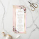 Élégant programme de mariage à fleurs blanches et dorées avec fleurs roses et verdure. Éléments correspondants disponibles. Personnalisez facilement en ligne.