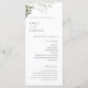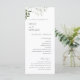 Carte de programme de mariage personnalisée au design minimaliste moderne avec une végétation sage et des fleurs blanches.
