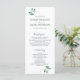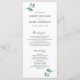 Programme de mariage minimaliste chic avec script de calligraphie élégant non noir et une touche élégante de feuillage d'eucalyptus vert sur un arrière - plan blanc. Ajoutez simplement les détails de votre programme de mariage. Conçu exclusivement pour vous par Happy Dolphin Studio.