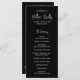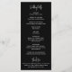 Programme de mariage noir moderne avec un design simple avec vos noms dans une typographie de script élégante et vos détails de l'événement dans une police sans serif minimaliste. Ce programme de mariage chic fonctionne bien avec n'importe quel style de mariage.
