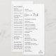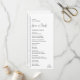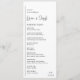 Programme de mariage moderne avec un design géométrique simple et minimal avec une ligne verticale le long du côté gauche avec vos informations alignées à gauche. Vos noms sont écrits dans un script manuscrit pour un toucher élégant. Dans le coin inférieur droit se trouve votre monogramme à deux initiales sur une petite ligne horizontale. La palette de couleurs peut être modifiée dans l'outil d'édition de conception.