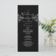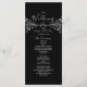 Élégant, moderne, classique noir et blanc programme de mariage avec coeur de corde argentée et élégante dentelle florale élégante dorée argentée.