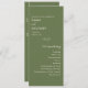 Un programme de mariage vert olive minimal et moderne, conçu avec des scripts et un élément floral. Personnalisez avec vos cérémonies de mariage sur le devant, et votre fête de mariage, et merci message sur le dos.