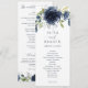 Floral bleu marine et argent avec verdure Aquarelle Mariage programmes de cérémonie : Ce programme de mariage comprend un magnifique bouquet d'aquarelle bleu marine floral au sommet. Le dos a de la place pour votre mariage avec un message de remerciement ou en mémoire en bas.
