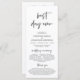 Meilleure journée, Elégant minimaliste moderne, script noir, carte de programme de cérémonie de Mariage. Il est conçu avec un accent de défilement qui peut être personnalisé avec du texte personnalisé/personnalisé pour votre fête de mariage, les détails de cérémonie, des notes commémoratives et un message de remerciement. Si vous cherchez d'autres types et tailles de cartes de programme, veuillez consulter notre section de collecte de cartes de programme correspondant.