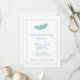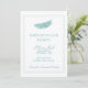 Carte commémorative bébé en blanc et turquoise avec une plume.