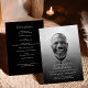 Le programme de commande mémorial noir et blanc avec photo est un hommage intemporel et élégant conçu pour célébrer la vie et la mémoire d'un être cher. Le capot de devant présente une photo pleine page en noir et blanc classique, avec l'expression "In Loving Memory" au-dessus du texte personnalisable pour le nom, les dates, et un court message d'hommage, créant un design raffiné et digne. Sous les principaux détails, des lignes supplémentaires peuvent être incluses pour reconnaître les rôles de famille ou les mots personnels de souvenir, ce qui rend le programme profondément personnel et unique. L'envers présente l'ordre de service en texte blanc clair sur un arrière - plan noir solide, assurant la lisibilité tout en maintenant un look sophistiqué. Cette disposition offre un espace pour les hymnes, les lectures, les sélections musicales et les hommages personnels, offrant un guide structuré pour la cérémonie tout en servant de gardien pour la famille et les amis. Idéal pour les funérailles, les services commémoratifs ou les célébrations de la vie, ce programme personnalisé allie simplicité et grâce à une personnalisation significative. Son design monochrome assure une esthétique polie et respectueuse, adaptée pour honorer les êtres chers de tout âge. Qu'il soit distribué à un service, envoyé par la poste à des proches ou gardé en souvenir de famille, ce programme de funérailles photo personnalisé offre un moyen durable de célébrer une vie bien vécue, préserver des souvenirs chéris et apporter le confort par un gardien magnifiquement conçu.