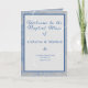 Le design présente votre texte au format de masse nuptiale catholique traditionnel affiché sur un support en marbre bleu et gris. Le symbole catholique IHS avec une croix est affiché à l'avant. L'Arrière - plan a un effet marbré. Chambre pouvant accueillir jusqu'à sept demoiselles d'honneur et Groomsmen. Le dos comprend un message de gratitude personnalisable et un mémorial facultatif pour ceux qui sont chers et qui sont passés. Comprend également de la place pour votre photo. Tout le texte est personnalisable. Conçu pour coordonner avec la "Suite Mariage Monogrammé en marbre bleu et gris".
