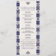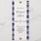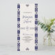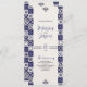 Cette conception mexicaine Talavera Majolica Navy Blue White Wedding Program présente une haute disposition verticale avec un arrière - plan crème souple encadré par des carreaux symétriques bleu marine à motifs sur les deux côtés. Le carrelage, inspiré des motifs traditionnels de Talavera ou de Majolica, présente une variété de motifs ornés, dont des éléments floraux, tourbillonnants et géométriques, créant une esthétique riche, traditionnelle, mais intemporelle. Les accents décoratifs minimaux sont placés en haut et en bas de l'espace central, laissant la zone centrale allongée ouverte et idéale pour le texte ou les détails de l'événement.