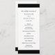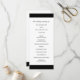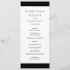 Programme moderne de mariage noir et blanc avec une bande audacieuse de noir en haut et en bas. Vos noms sont dans une police serif classique et vos détails sont dans une combinaison d'une police sans serif moderne et d'un script élégant. Le dos a une bande le long du fond avec votre monogramme. Cette conception simple et minimale avec un libellé traditionnel est idéale pour un mariage formel.