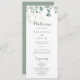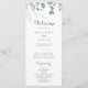 Ce programme minimaliste de mariage d'eucalyptus à la végétation luxuriante est parfait pour un mariage rustique. Le design comprend des feuilles d'eucalyptus verts et élégants à l'aquarelle.