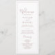 Ce programme minimaliste de mariage en or rose est parfait pour un mariage simple. Le design romantique moderne est composé d'or rose classique et de typographie blanche associée à une calligraphie rustique mais élégante avec un style vintage lettré à la main. Personnalisable dans n'importe quelle couleur. Gardez le design simple et élégant, en l'état, ou personnalisez-le en ajoutant vos propres graphiques et artwork. Inclure le nom de la mariée et du marié, la date et le lieu du mariage, le message de remerciement, l'ordre de service, la fête de la mariée et un mémorial optionnel "en mémoire d'amour".