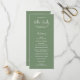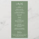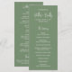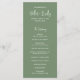 Programme moderne de mariage vert sauge avec un design simple avec vos noms dans une élégante typographie de script et vos détails de l'événement dans une police sans serif minimaliste. Ce programme de mariage chic fonctionne bien avec n'importe quel style de mariage.