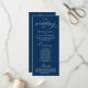 Modern Classy Elegant Wedding Ceremony Program card. It is designed with scroll accent that can be personalised with custom/ personalised text for your bridal party, ceremony details, memorial notes and thank you message, in Navy Blue.
