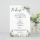 Ce programme de mariage est doté d'une touche élégante avec un script de calligraphie moderne et magnifique avec un texte régulier accompagné d'une aquarelle d'eucalyptus verdure feuillage feuilles. Habille-le avec ta propre image sur le dos et wow ton invité. Vous pouvez personnaliser le texte et customiser le nom, la date et l'emplacement des couples ainsi que les détails du programme. Remarque : l'arrangement feuille verdoyant avec l'illustration de ligne ne peut pas être modifié, modifié ou supprimé. Vous ne pouvez changer que la couleur des élégants mots calligraphiques de "Mariage", "La Cérémonie", "Merci", "La Fête du Mariage" et de l'oeuvre d'art de l'anneau mariage. Vous pouvez customiser le programme quand vous le souhaitez.