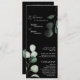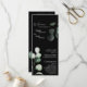 Cette conception moderne de programme plat mariage noir verdoyant propose un mélange facile et des styles coordonnés en noir et blanc avec des éléments de verdure délicats ajoutant une floraison gracieuse autour d'une typographie simple sophistiquée et un joli script de calligraphie minimale. L'eucalyptus à l'aquarelle et d'autres feuilles botaniques s'arment magnifiquement tout le long, avec un teint émeraude foncé qui s'estompe dans un effet sombre pour un vert menthe clair - pour ajouter juste assez d'une touche classe de nature rustique à un décor contemporain neutre. Cette magnifique collection créerait un air d'élégance poli pour votre mariage de rêve formel ou décontracté ou autre événement spécial. Comme pour tous nos designs, si vous avez des questions ou des demandes spéciales, contactez-nous.