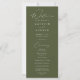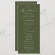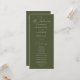 Élégant programme de mariage avec un script de calligraphie blanc moderne avec un arrière - plan vert olive pour créer un design qui est parfait pour les mariages de tous les styles et de toutes les saisons. Personnalisez l'avant du programme de mariage moderne avec vos noms, la date et l'emplacement du mariage et l'ordre de la cérémonie. Le simple programme de mariage vert olive s'inverse pour afficher une liste de votre mariage. Le design a été conçu pour être coordonné avec notre collection de mariages Modern Elegance.
