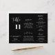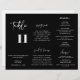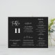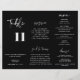 Transformez cette feuille de papier en un menu triplé mariage noir moderne, numéro de table et programme avec des informations sur la chronologie, les choses qui sont bonnes à savoir, la nourriture et le menu bar. Plier simplement, scotchez la couture sur le dos et utilisez ce programme de papeterie mariage moderne pour votre réception de mariage. La couleur Arrière - plan peut être changée dans l'outil de conception si vous le souhaitez!