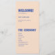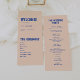 Programme moderne de mariage rétro & audacieux bleu beige. Customisez avec les noms des mariés et des mariés, votre lieu et la date du mariage, l'ordre de service et les noms des mariés à l'arrière.