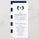 Ajoutez vos détails pour créer une carte unique et élégante mais moderne programme de mariage dans un style marin à thème hippique. Cette conception comporte une illustration nautique vintage suivie de vos détails en dessous. À l'envers, une série de rayures marines et blanches complètent le look. Tous les éléments de cet élément sont ajustables à l'aide de la fonction de personnalisation. Profitez de la création et de la réalisation de votre propre.