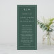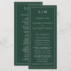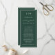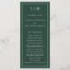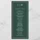 Programme de Mariage moderne avec un design simple mais élégant avec une disposition traditionnelle. Votre monogramme de deux lettres est en haut avec vos détails entourés d'une mince bordure. Tous les éléments de conception sont blancs sur un arrière - plan vert de forêt et peuvent être modifiés dans l'outil d'édition de conception. Un design minimaliste à l'ambiance classique qui conviendra à un mariage formel.