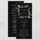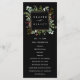 Ce programme de mariage présente de l'eucalyptus aquarelle peint, des feuilles vertes, des baies rouges, des branches de pin avec un cadre carré en faux or sur fond noir. Pour une personnalisation plus avancée de ce design, veuillez cliquer sur le lien "Personnaliser davantage". Des articles assortis sont également disponibles.