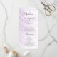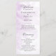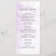 Ce programme de mariage formel et élégant présente une superbe aquarelle violette abstraite qui encadre magnifiquement les informations de cérémonie.