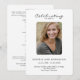 Un élégant programme de mémorial de funérailles personnalisé avec photo. Le design présente un modèle de photo simple avec une typographie noire moderne classique sur un fond blanc propre. Texte et photo faciles à personnaliser. Nos sincères condoléances à vous et à votre famille pour votre perte.