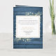 Un ordre personnalisé de service funéraire mémorial plié programme avec verdure sur un arrière - plan rustique de panneaux de bois bleu. Conçu par Thisisnotme©
