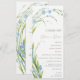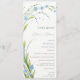 Programme de mariage avec un élégant bouquet de fleurs bleu clair-me-pas avec des feuilles vert clair et des tiges courbées, des couleurs pastel naturelles printemps ou été, un bouquet de lumière romantique de fleurs sauvages. Aquarelle numérique botanique. Programme de mariage à la botte de fleur mignonne. Oublie-Moi-Pas Collection.