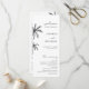 Donnez le ton parfait pour votre journée spéciale avec ce programme de mariage tropical de destination avec palmier tiré à la main. Doté d'élégants palmiers dessinés à la main, ce programme personnalisable est idéal pour les mariages tropicaux, de plage ou de destination. Guidez vos invités à travers la cérémonie avec des détails personnalisés, ajoutant une touche élégante à votre célébration. Parfait pour les couples à la recherche d'une ambiance détendue mais élégante qui reflète leur histoire d'amour.