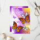 Orange, papillons monarques détaillés sur la lumière, violet, pittoresque, arrière - plan peint.