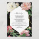 Une belle aquarelle rose et blanc peonies fleurissent design mariage avec cadre géométrique or sur un arrière - plan noir. Un design unique qui utilise des fleurs de pivoines botaniques vintages dans les tons rose et blanc. Un élégant design floral rose et blanc peonies avec une touche de verdure. Un mariage de cadre géométrique doré chic design de programme Itinéraire avec des éléments modernes. Des articles de papeterie mariage correspondants et d'autres formats d'invitation de mariage sont également disponibles.