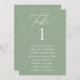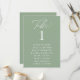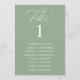 Élégant "table" en calligraphie blanche, avec les noms des invités et le numéro de table, carte de plan de table de mariage. La couleur de fond est représentée en vert sauge, peut être personnalisée.