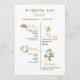Chronologie élégante et moderne du jour de mariage avec des icônes illustrées à l'aquarelle.