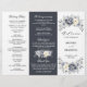 Carte de programme pliable de mariage d'hiver à motif floral élégant avec un bouquet de fleurs aquarelles grises élégantes, ivoire et argent, et verdure aux teintes gelées. Veuillez me contacter pour toute aide de personnalisation ou si vous avez besoin d'un autre produit avec ce design.