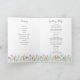 Ce programme plié de mariage boho de jardin de fleurs sauvages de printemps est parfait pour un mariage de jardin ou en plein air. Il comprend le nom de la mariée et du marié, la date et le lieu du mariage, un message de remerciement, l'ordre du service et une liste du cortège de mariage au dos.