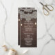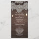 Carte de porte-programme en bois rustique et dentelle vintage et lumières. Articles assortis disponibles.