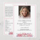 The front features a portrait photo with white blurring at the bottom, while the back includes space for the obituary, order of service, and a customizable section for a poem, prayer, or acknowledgment.