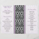 Le texte de ce programme de mariage damassé lavande violet et noir est entièrement personnalisable. Il est destiné à être plié vers le milieu. Pour modifier le texte, utilisez l'option personnaliser. Pour les modifications plus importantes, telles que les modifications apportées à la police, à la couleur de police, à la taille de police ou à la disposition du texte, utilisez l'option customiser. Une fois votre texte finalisé, si vous devez le déplacer un peu, vous pouvez le faire en utilisant l'option customiser. Ce programme d'occasion spéciale damassé est actuellement customisé comme un programme de mariage, mais il fonctionnerait aussi bien comme un programme pour d'autres occasions spéciales. Vraiment, cela ferait même un très beau bulletin d'église avec des changements au texte. Laissez votre imagination vous mener. Il est recommandé que ce soit acheté seulement comme une finition mate standard de 80lb. L'option papier 100lb est difficile à plier et n'est donc pas recommandée.