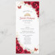 Programme de célébration de la Quinceanera rouge, or et blanc. Carte d'événements à double face mince. Caractéristiques, police de script, papillons d'or, roses d'aquarelle et tiara. Parfait pour une élégante célébration de glamour de style princesse. Personnalisez avec vos propres détails. Invitations Zazzle imprimées ou téléchargement instantané modèle imprimable numérique.