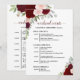 These beautiful cards are designed to let your guests know the schedule for your wedding celebration. The rustic boho chic design includes hand painted watercolor roses, eucalyptus leaves, and garden greenery in shades of burgundy, red, and blush pink. The front has a list of events for the entire weekend, and the back has a detailed timeline for the wedding day itself. Great addition to a wedding welcome bag, and a wonderful way to thank your guests for celebrating with you!