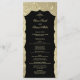 Ce programme de mariage allie sophistication et élégance intemporelle. Le côté avant présente les noms du couple surlignés dans un cadre damassé doré orné, dressé contre un arrière - plan noir profond. Au contraire, le programme de mariage complet est affiché sur un panneau doré chatoyant bordé de fleurs damassées assorties. Toutes les zones de texte sont entièrement modifiables, ce qui rend cette carte parfaite pour des célébrations mariages formelles, élégantes et mémorables.