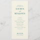 This is a minimalist style image featuring an elegant wedding ceremony program for Lauren and Benjamin. The design uses a soft, pastel green color palette on a light beige background, creating a serene and sophisticated atmosphere. The text is neatly organized with classic typography that adds to the timeless feel of the event. It details each part of the ceremony, from the procession to the recessional, making it both informative and aesthetically pleasing. Perfect for couples who appreciate simplicity and elegance in their special day.