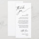 Programme Romantic Wedding Reception Dinner Thank You Card