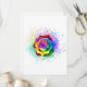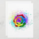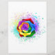 Grand rose fleuri avec pétales arc-en-ciel sur arrière - plan blanc, peint sur des éclaboussures de peinture colorée et lumineuse. 3d