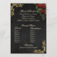 This elegant floral and gold leaves Quinceanera program is ready to personalize with your order of events, special thanks and any other information you wish to add. The design features bouquet of red roses on an elegant black background embellished with a frame of gold leaves. Designed to coordinate with the "Floral & Gold Leaves - Black & Pearl" Quinceanera Collection. To change details, click «Personalize». To move the text or change the text size, font, or color click «Click to customize further»